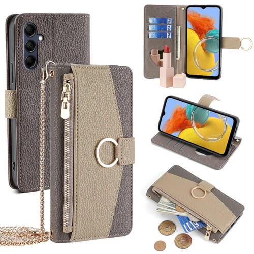 Funda para Samsung Galaxy M14 5G Crossbody Litchi Texture Cuero (Gris)