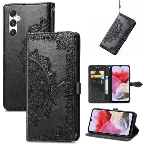 Funda para Teléfono Samsung Galaxy M34 5G Cuero Relieve Flor de Mandala (Negro)