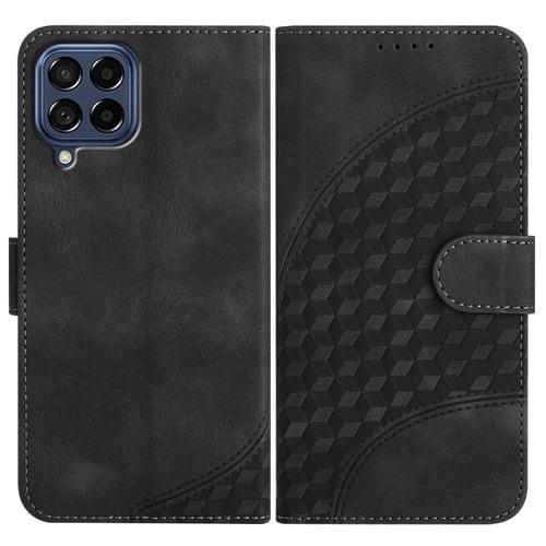 Funda para Teléfono Samsung Galaxy M53 5G Yx0060 Cuero con Relieve y Cabeza de Elefante con Cordón (Negro)