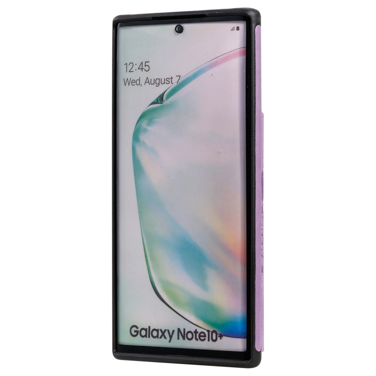 Estuche protector para Samsung Galaxy Note 10 Pro con patrón en relieve, soporte, ranuras para tarjetas y marco de fotos (Púrpura)