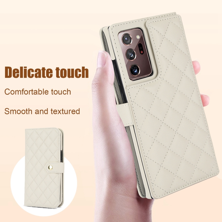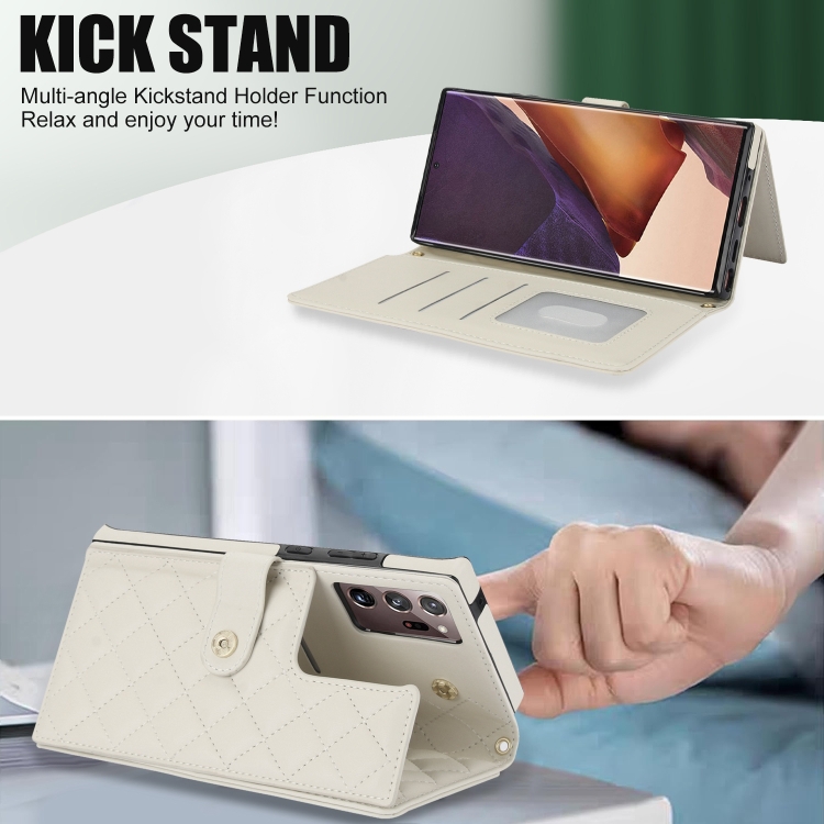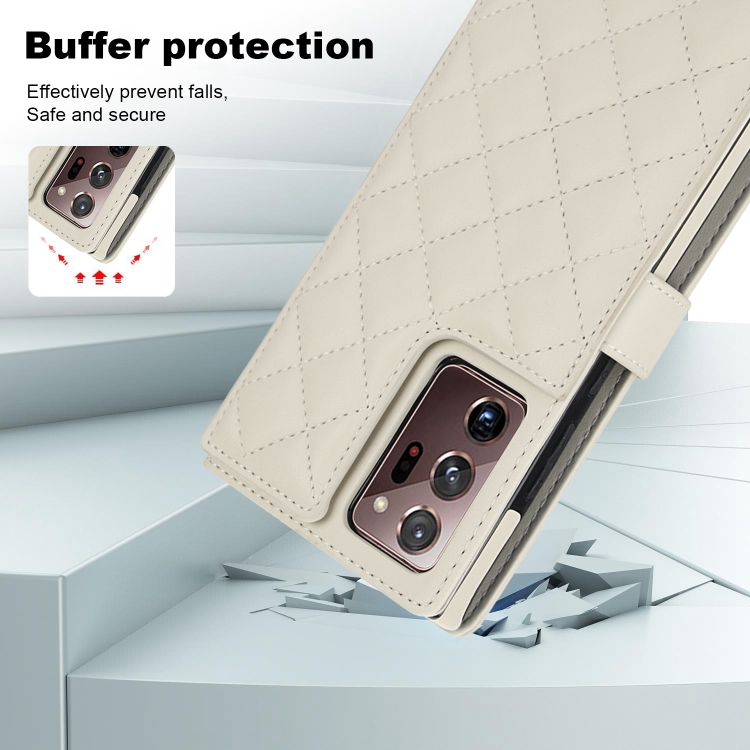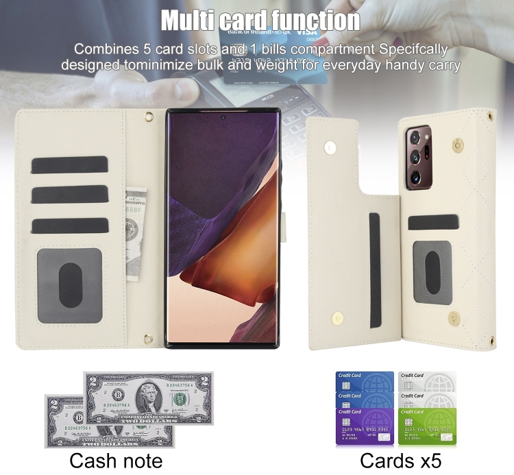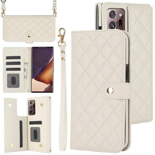 Estuche para Teléfono Samsung Galaxy Note20 Ultra Crossbody Cuero Rómbico Multifunción (Blanco)
