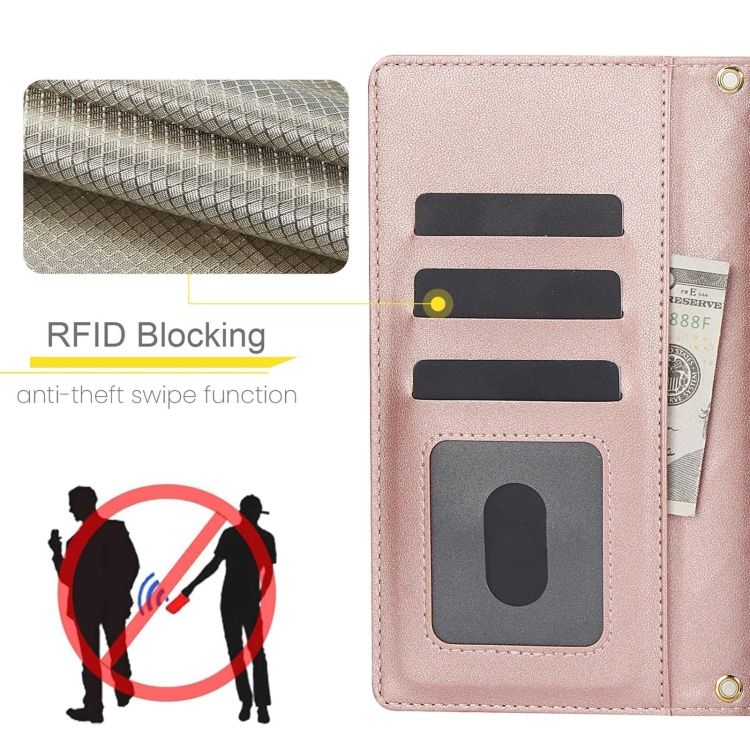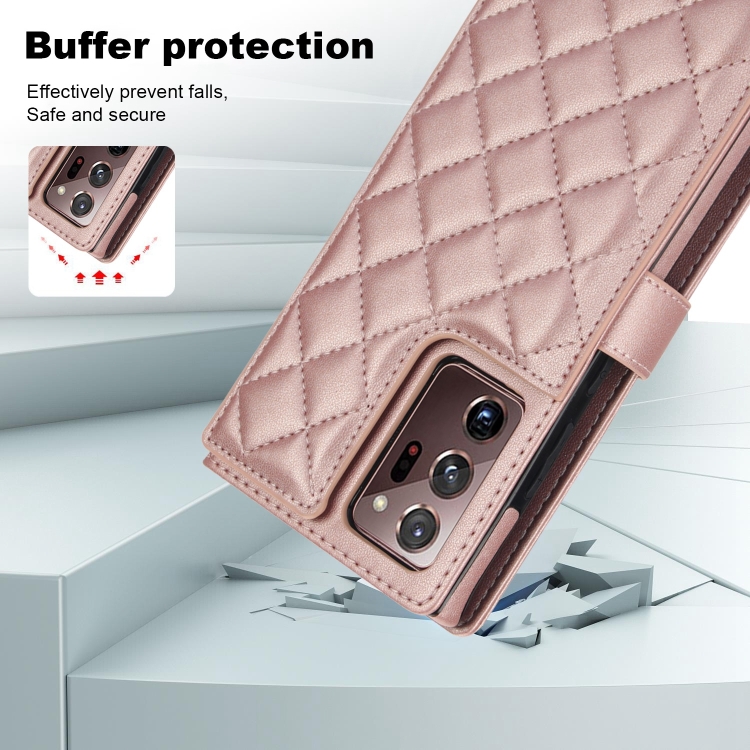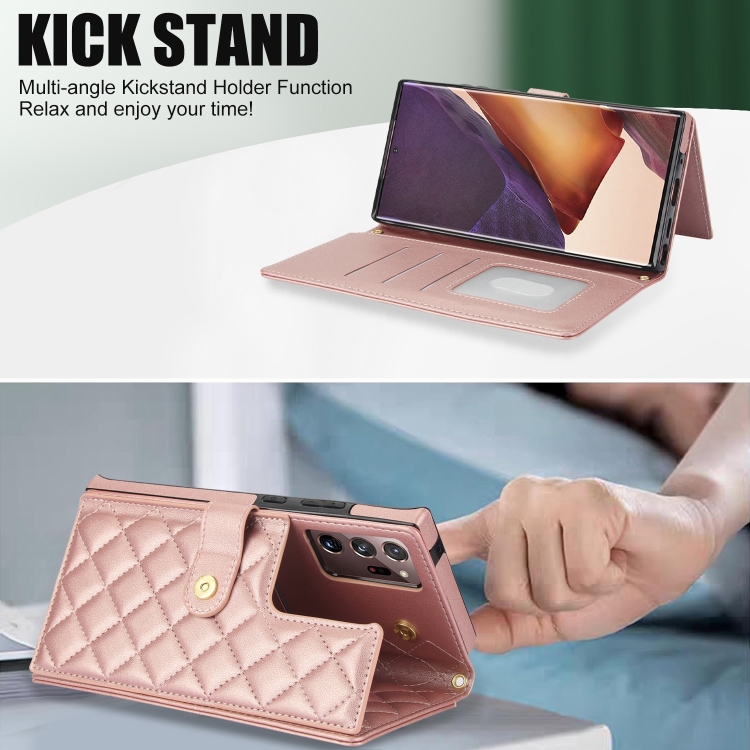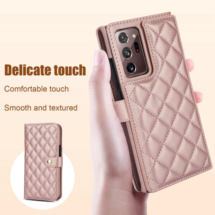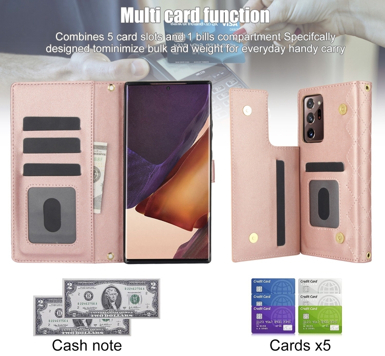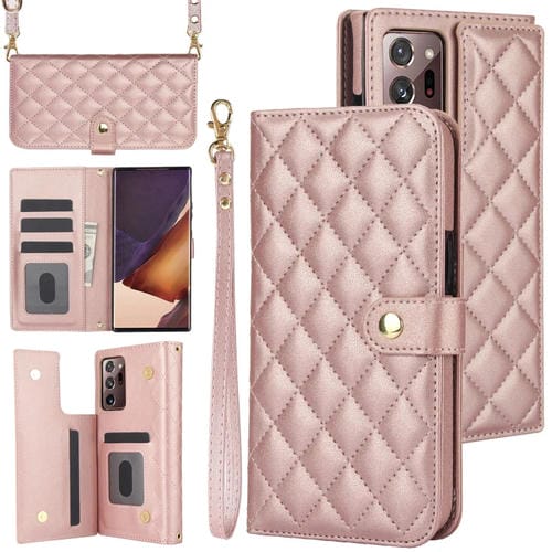 Estuche para Teléfono Samsung Galaxy Note20 Ultra Crossbody Cuero Rómbico Multifunción (Oro Rosa)