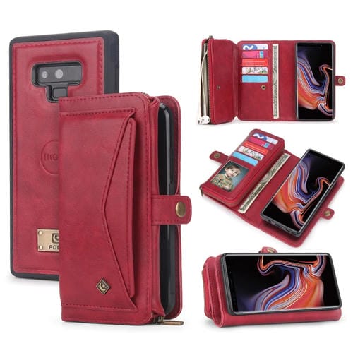 Funda de Cuero Samsung Galaxy Note9 con Billetera y Cremallera Multifuncional (Rojo)