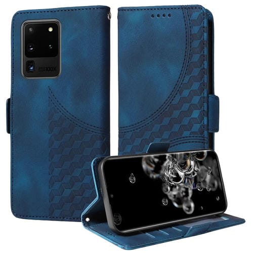 Estuche para Teléfono Samsung Galaxy S20 Ultra Cuero Estrellado con Rombos En Relieve (Azul)