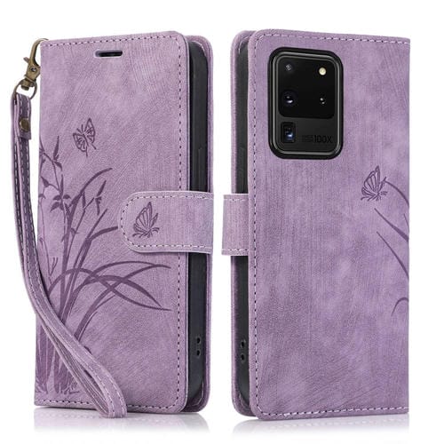 Funda de Cuero Samsung Galaxy S20 Ultra Orchid Butterfly En Relieve (Púrpura)