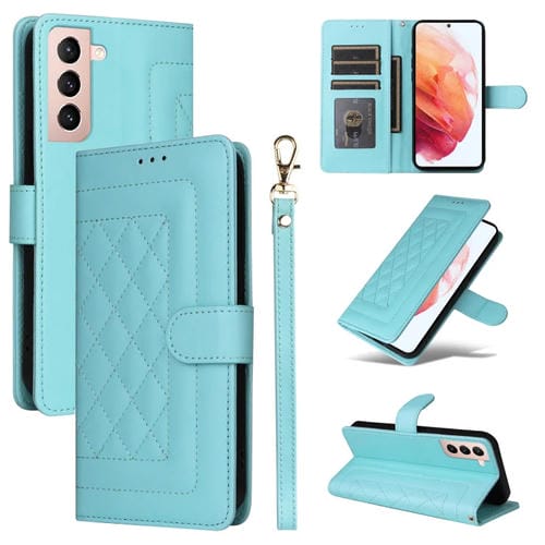 Estuche para Teléfono Samsung Galaxy S21 5G con Tapa de Cuero Diamond Lattice (Verde Menta)
