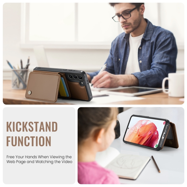 Estuche para teléfono Samsung Galaxy S21 5G Jeehood J05 cuero Rfid magnético empresarial (Marrón)