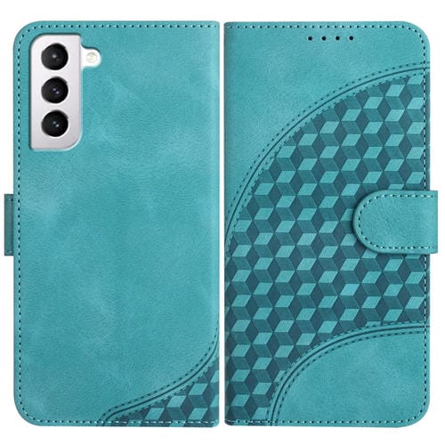 Funda de Cuero Samsung Galaxy S21 5G Yx0060 con Relieve y Cabeza de Elefante con Cordón (Azul Claro)