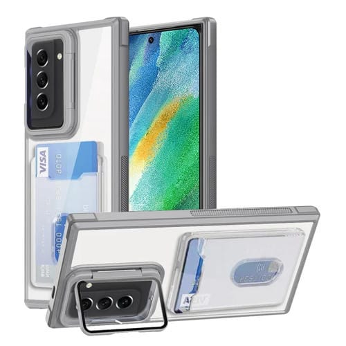 Estuche para Teléfono Samsung Galaxy S21 FE 5G TPU Híbrido Acrílico con Soporte para Tarjeta (Blanco)