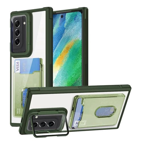 Estuche para Teléfono Samsung Galaxy S21 FE 5G TPU Híbrido Acrílico con Soporte para Tarjeta (Verde)