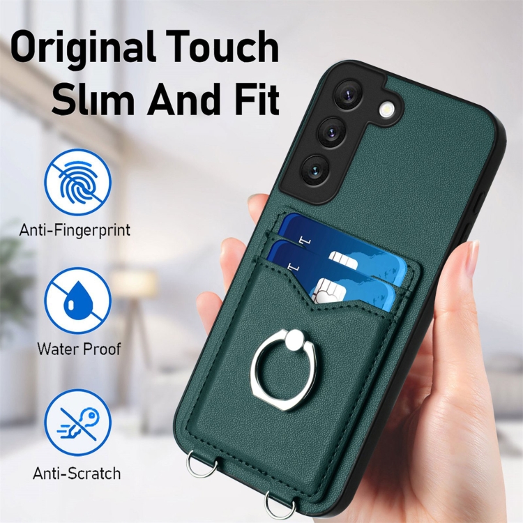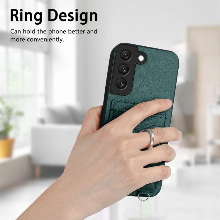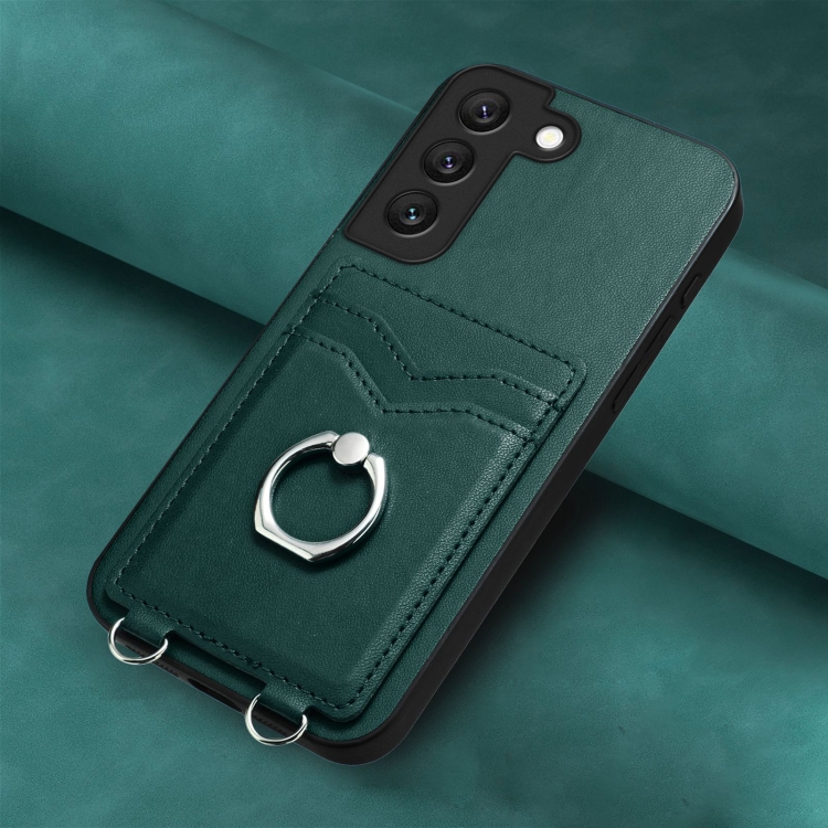 Estuche para Teléfono Samsung Galaxy S21 FE 5G R20 con Soporte para Tarjeta con Anillo (Verde)
