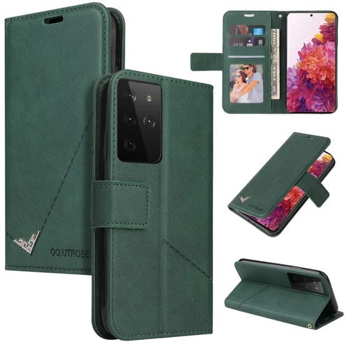 Estuche para Teléfono Samsung Galaxy S21 Ultra 5G Gq Utrobe Cuero en Ángulo Recto (Verde)