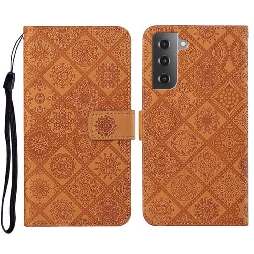 Estuche para Teléfono Samsung Galaxy S23 5G Cuero Patrón en Relieve Estilo Étnico (Marrón)