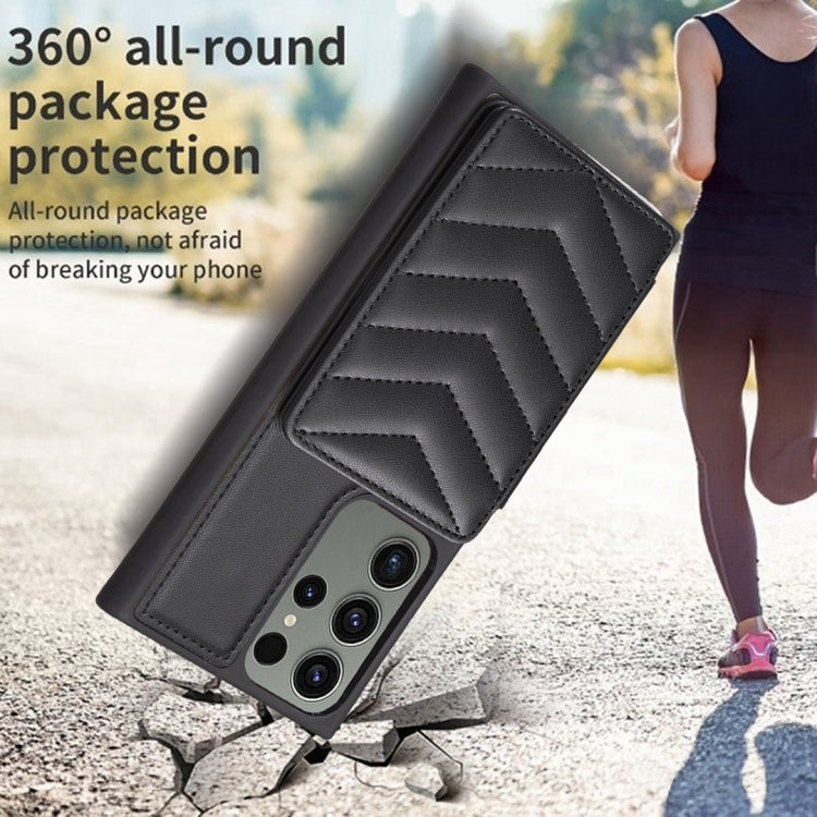 Para Samsung Galaxy S23 Ultra 5G BF26 Wave Pattern Card Bag Holder Phone Case (Negro)