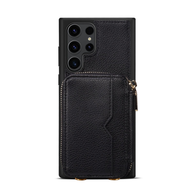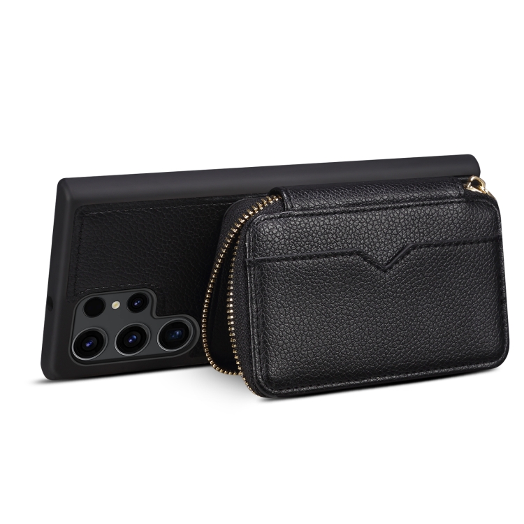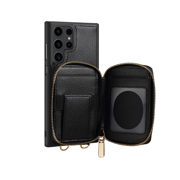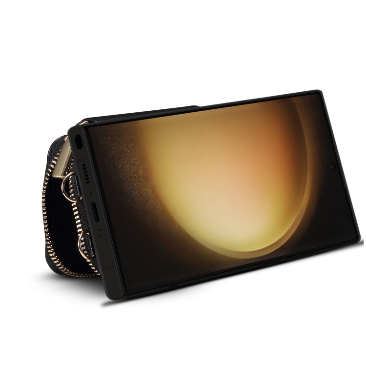 Para Samsung Galaxy S23 Ultra 5G Estuche para teléfono con ranura para tarjeta con cremallera (Negro)