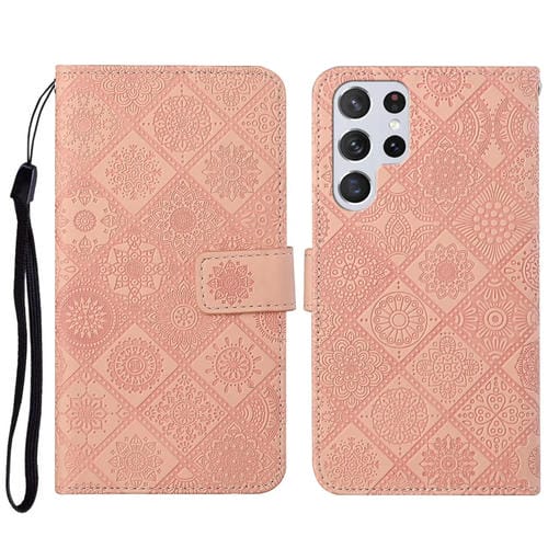 Estuche para teléfono Samsung Galaxy S23 Ultra 5G Cuero patrón en relieve estilo étnico (Rosa)