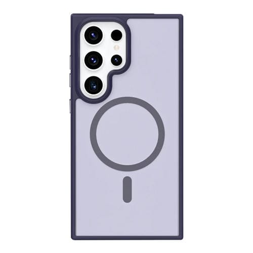 Estuche para Teléfono Samsung Galaxy S24 Ultra 5G Botón de Metal Sensación de Piel Magsafe Mate a Prueba de Golpes (Púrpura)