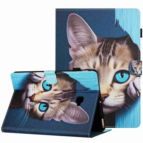 Funda para Tablet Samsung Galaxy Tab a 10.1 T580 Cuero Inteligente Costuras Patrones (Gato Azul)
