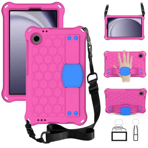 Funda para Tablet Samsung Galaxy Tab A9 8.7 X110 X115 Híbrida Eva Honeycomb con Correa (Rosa Roja + Azul)
