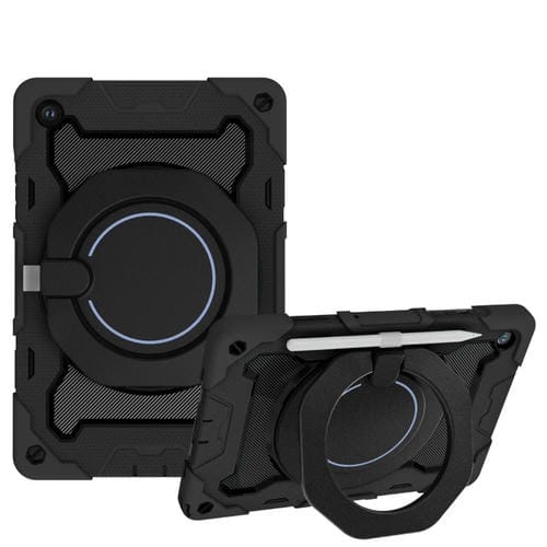Funda de Silicona Armor para Samsung Galaxy Tab A9 con Soporte de Anillo Giratorio (Negro)