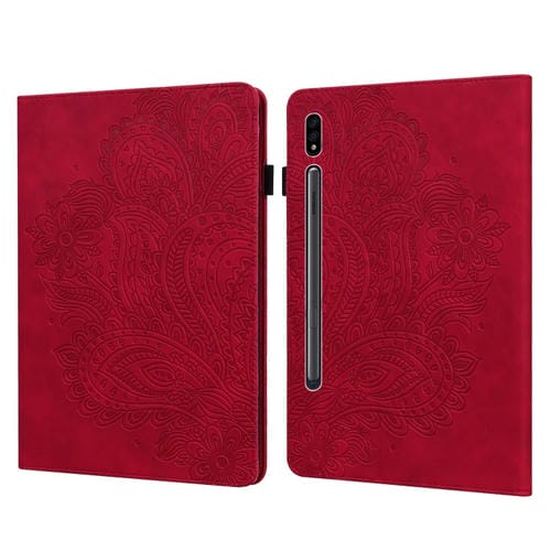 Estuche para Tablet Samsung Galaxy Tab S9 Cuero Estampado Pavo Real (Rojo)
