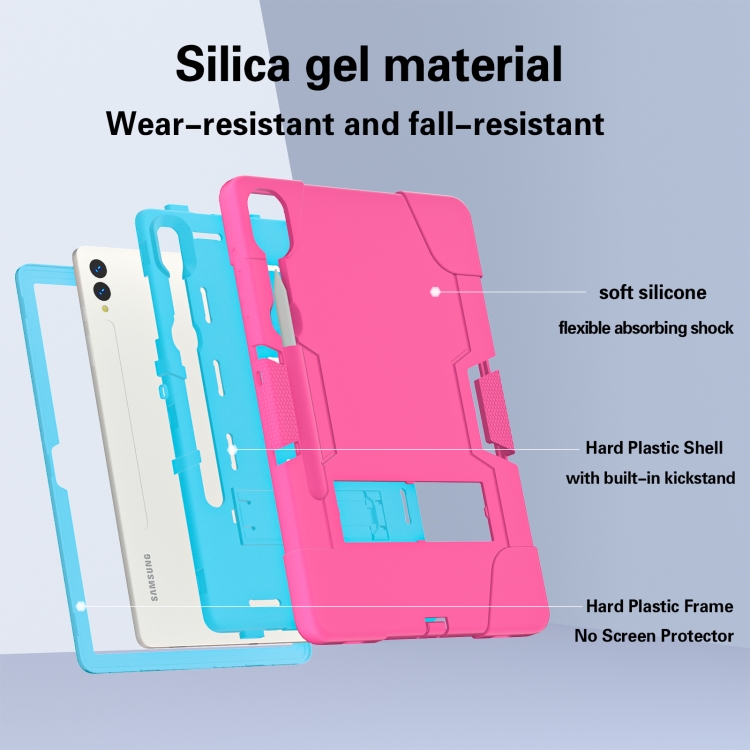 Funda para Tablet Samsung Galaxy Tab S9 Silicona Color de Contraste con Soporte (Rojo Rosa + Azul)