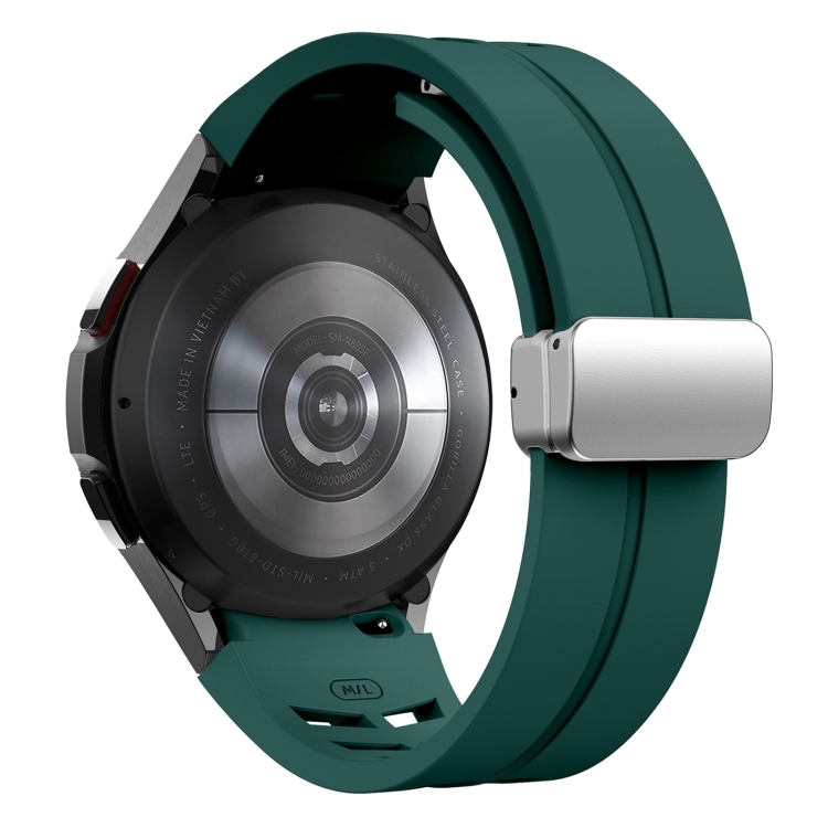 Correa de Silicona para Samsung Galaxy Watch 4 Classic 42/46mm Richard con Hebilla Plateada Plegable Magnética (Verde Oscuro)