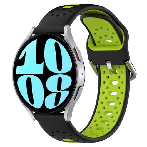 Banda de Reloj de Silicona para Samsung Galaxy Watch 6 40mm 20mm Dos Colores Transpirable (Negro + Verde Lima)