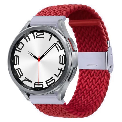 Correa de Reloj Clásica para Samsung Galaxy Watch 6/6 con Hebilla de Metal y Trenzado de Nailon (Rojo)
