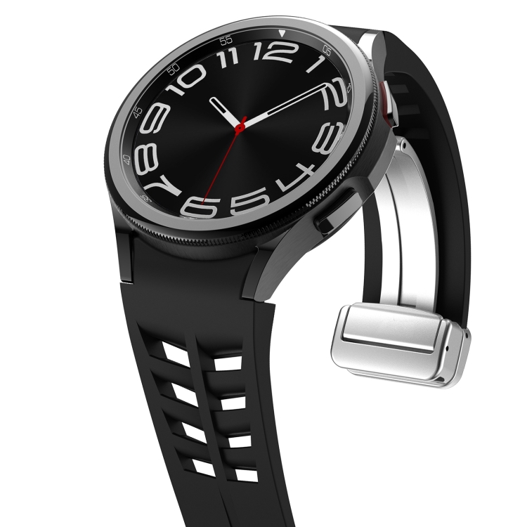 Correa de Silicona para Samsung Galaxy Watch 7 40/44mm con Hebilla Plateada Plegable Magnética (Negro)