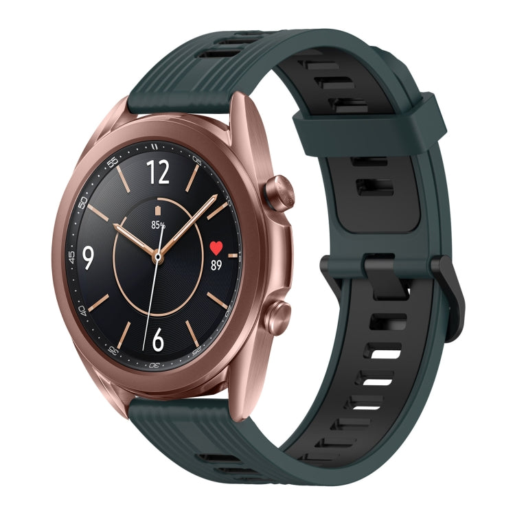 Banda de Reloj de Silicona para Samsung Galaxy Watch3 41mm 20mm Patrón Vertical (Verde Oliva + Negro)