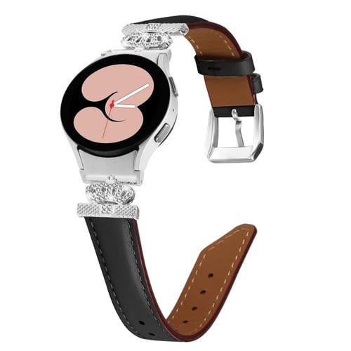 Correa de Cuero Sarga para Samsung Galaxy Watch6/6 con Forma de D y Corona Clásica (Negro Plateado)
