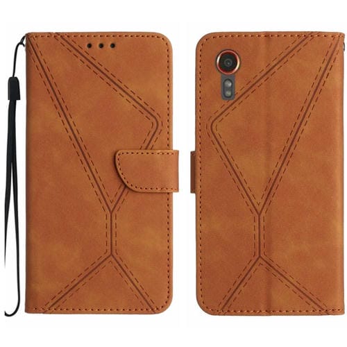 Funda de Teléfono Samsung Galaxy Xcover 7 5G Cuero con Costuras En Relieve (Marrón)