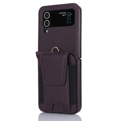 Estuche plegable Samsung Galaxy Z Flip4 con ranuras para tarjetas y cordón largo (Púrpura Oscuro)