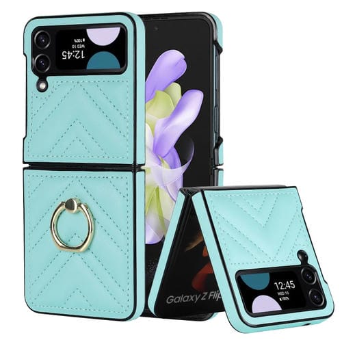 Funda Protectora Samsung Galaxy Z Flip4 Teléfono Plegable Forma de V con Anillo Giratorio (Azul)