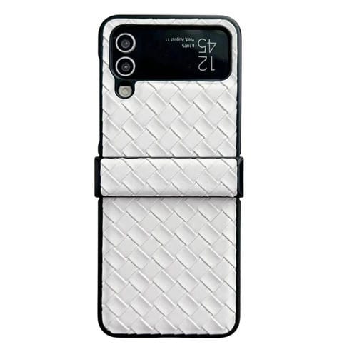 Funda para Teléfono Samsung Galaxy Z Flip4 Juego de Tres Piezas PU Plegable con Textura Tejida (Blanco)
