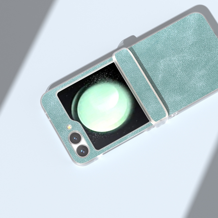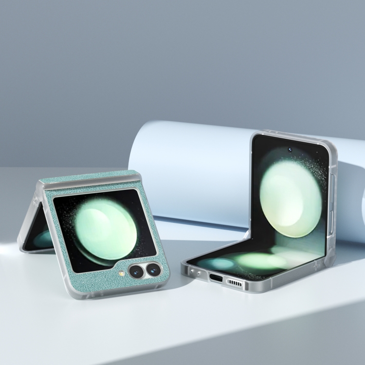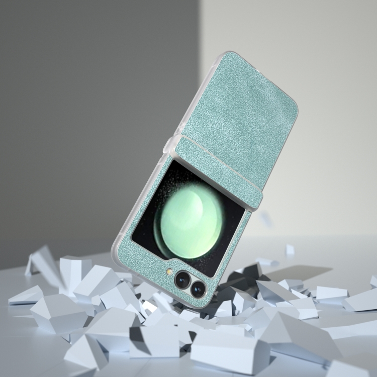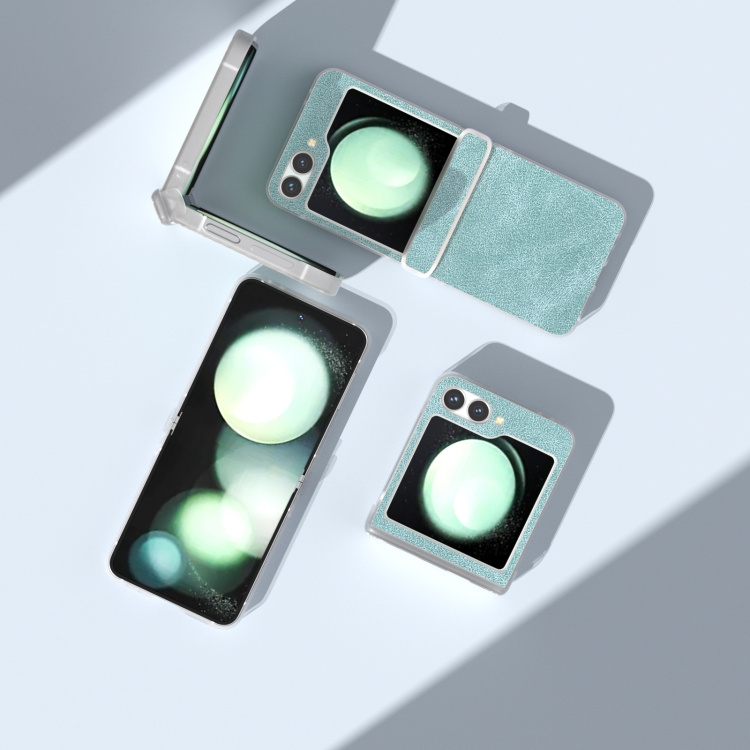 Funda para Samsung Galaxy Z Flip5 5G con Borde Transparente Esmerilado de Cuero PU (Azul Claro)