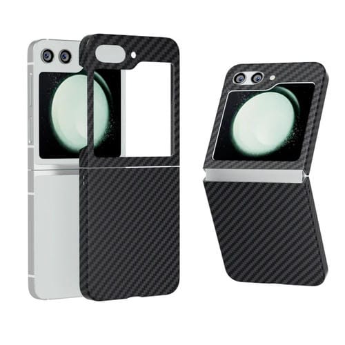 Funda Protectora Samsung Galaxy Z Flip5 Textura Fibra de Carbono con Calcomanía (Negro)