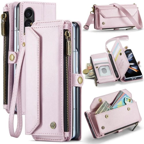 Estuche para Teléfono Caseme C36 para Samsung Galaxy Z Fold4 Cartera con Ranuras para Tarjetas y Cremallera Antirrobo Rfid (Rosa)
