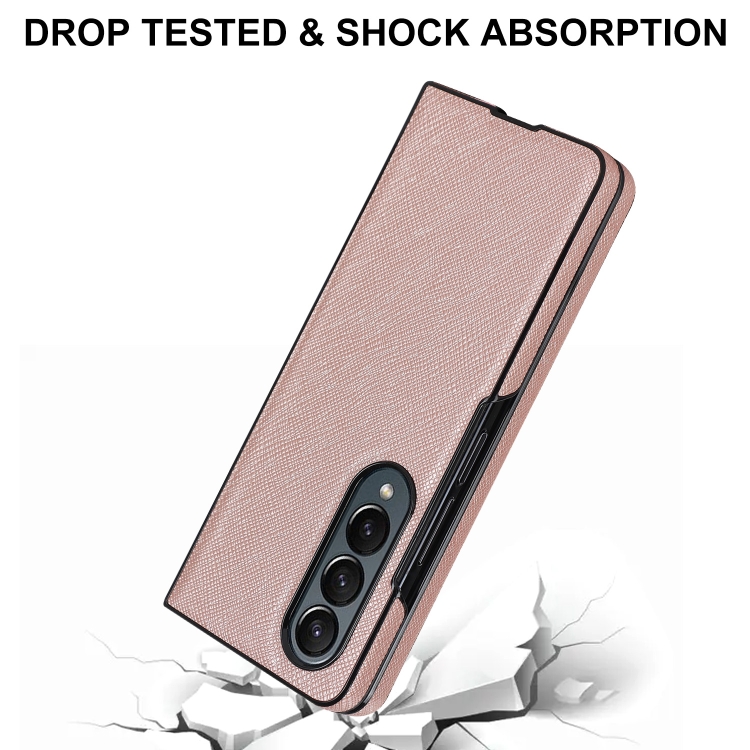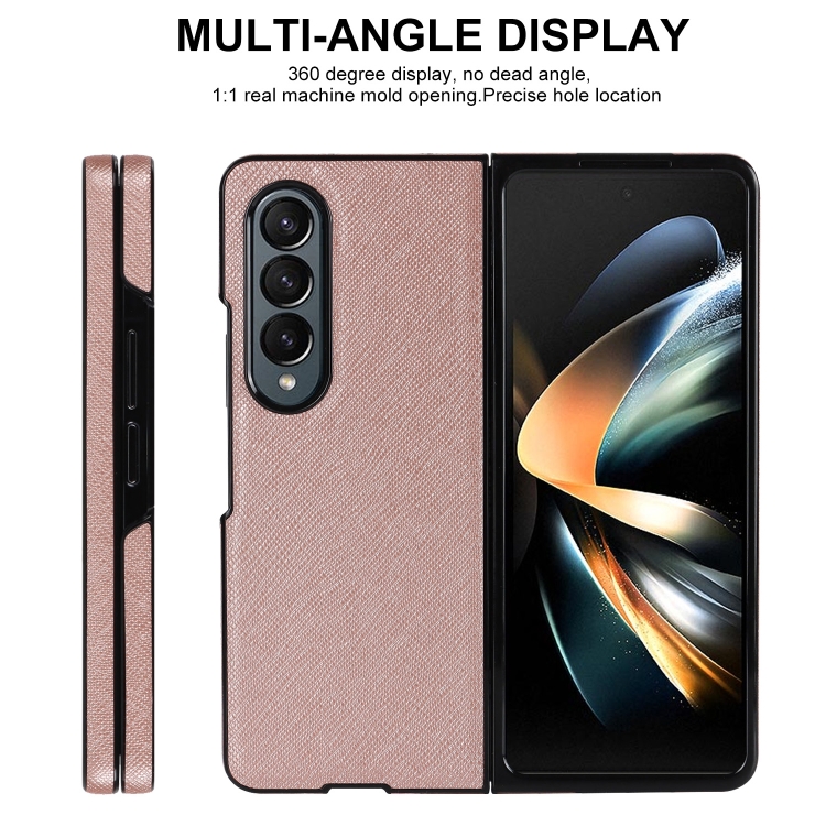 Estuche para Teléfono Plegable Samsung Galaxy Z Fold4 con Patrón Cruzado (Oro Rosa)