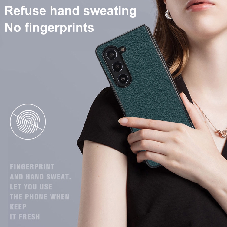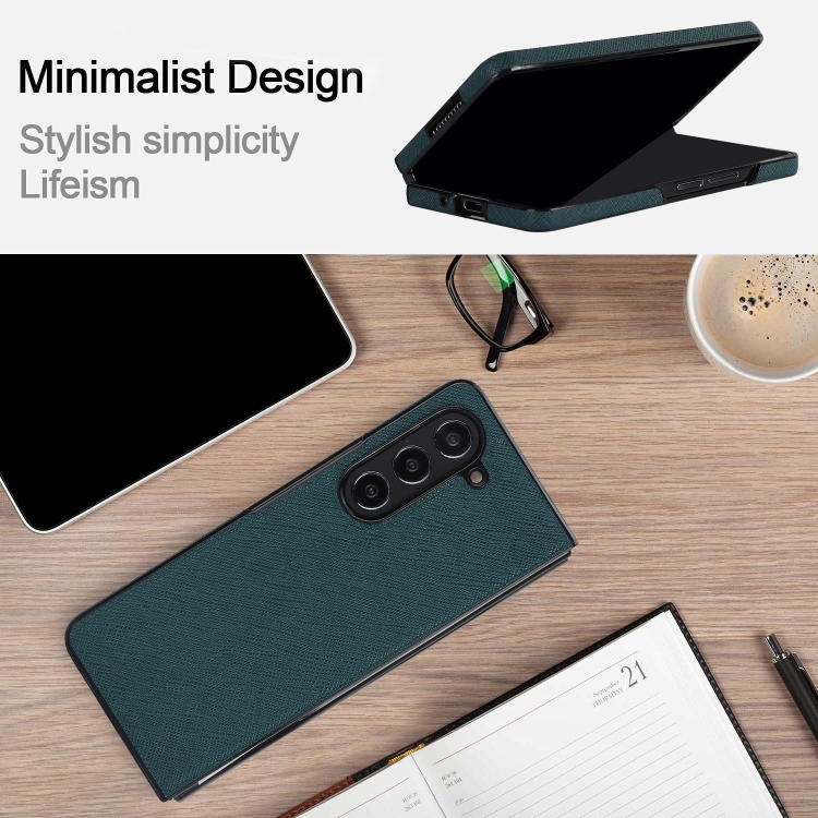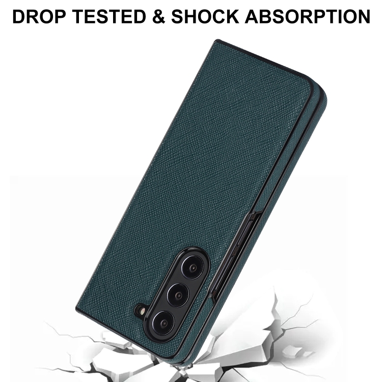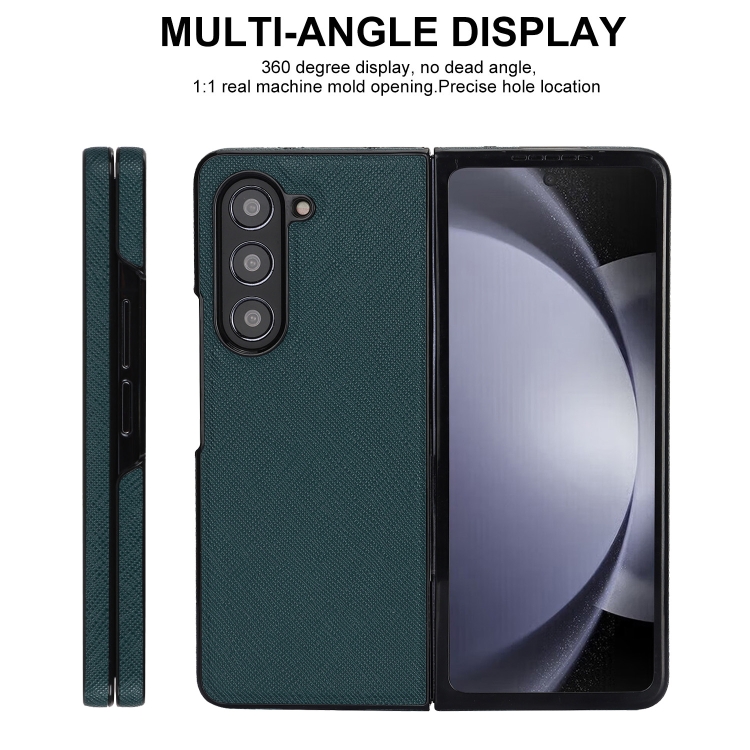 Estuche para teléfono plegable Samsung Galaxy Z Fold5 5G con patrón cruzado (Verde)