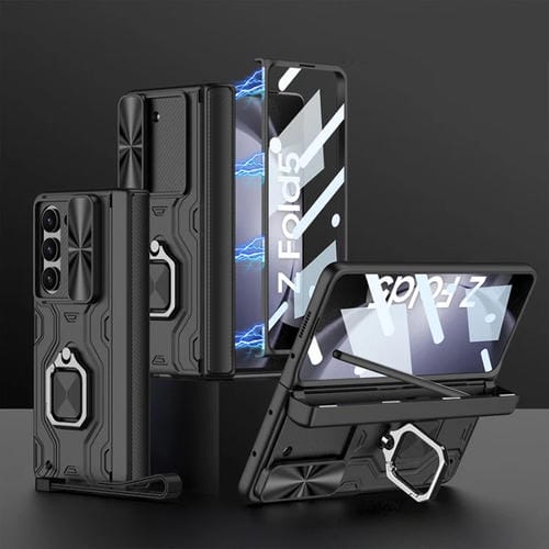 Estuche para teléfono Samsung Galaxy Z Fold5 Gkk con carcasa de aleación plegable integrada para PC con caja para bolígrafo (Negro)