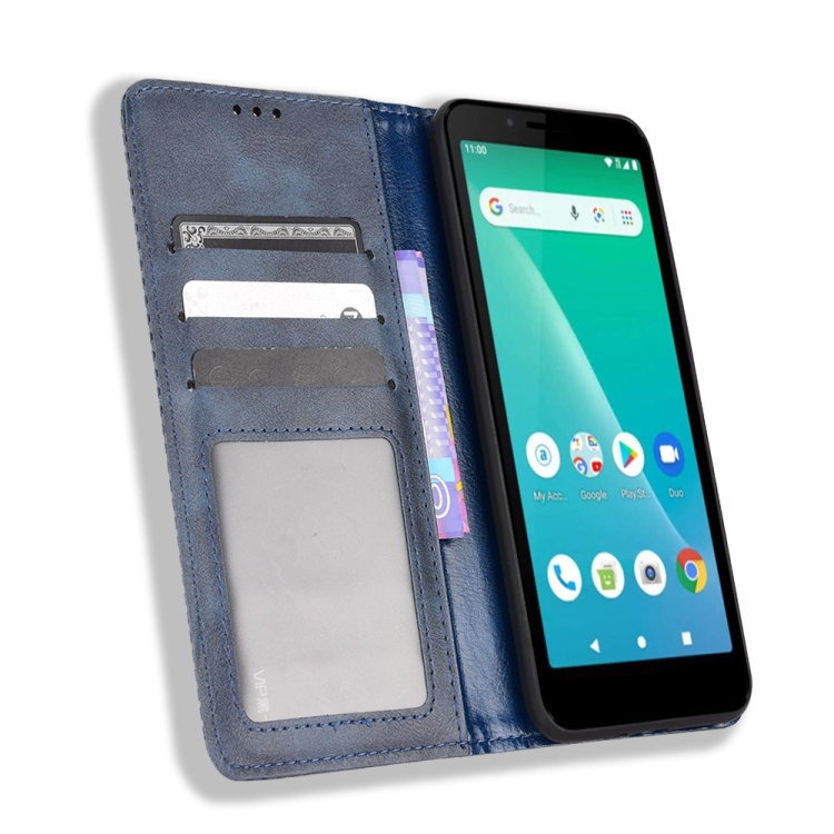 Funda Telefónica Schok Volt Sv55 / Sv55216 Hebilla Magnética Cuero Textura Retro (Azul)
