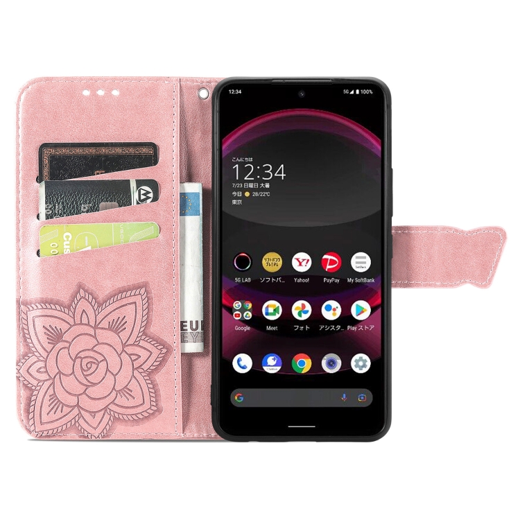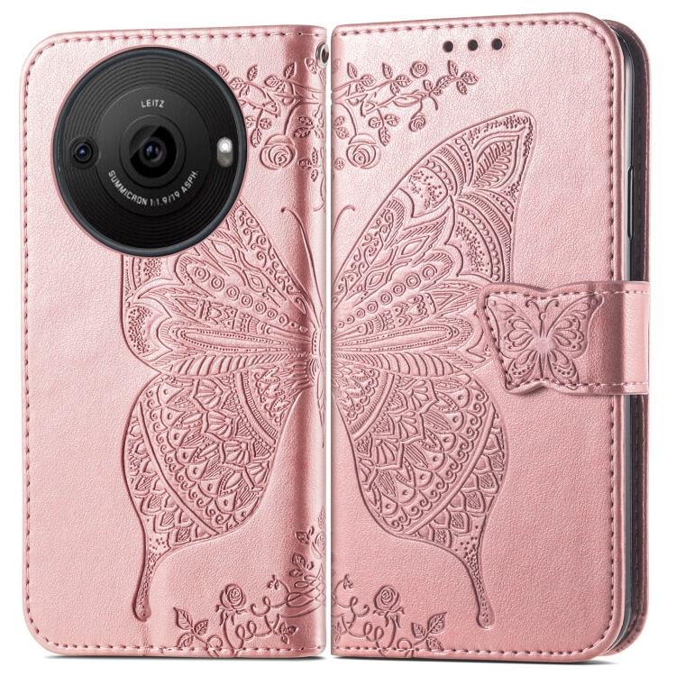 Estuche para Sharp Aquos R8 Pro Butterfly Love Flower de Cuero en Relieve (Oro Rosa)