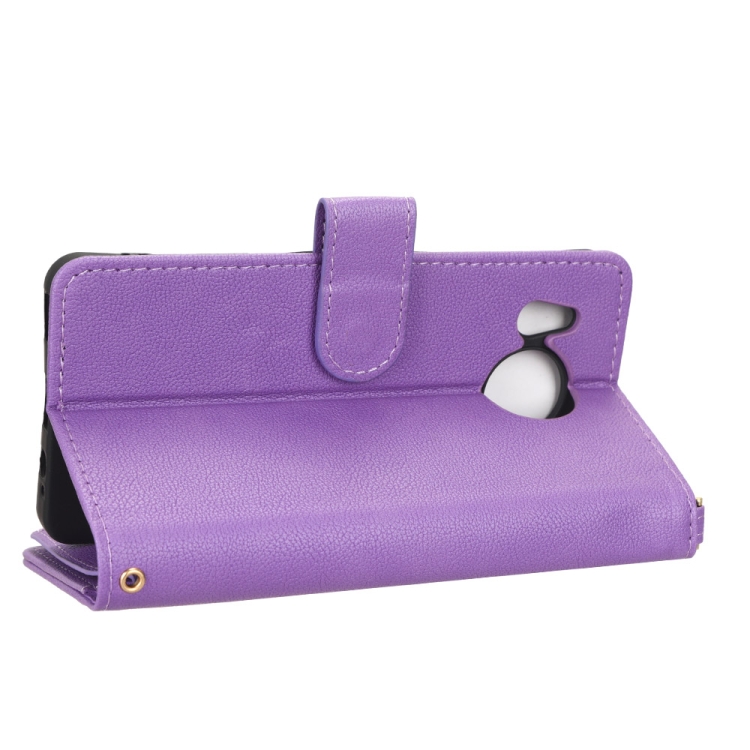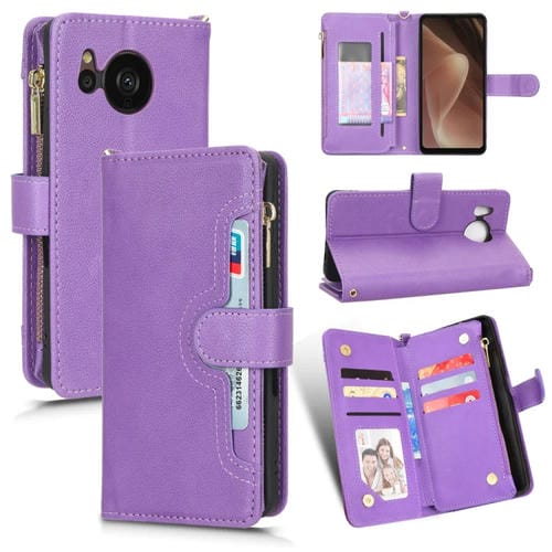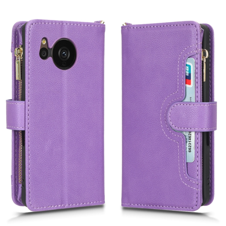 Funda de Cuero para Sharp Aquos Sense7 con Textura Litchi y Cremallera (Púrpura)