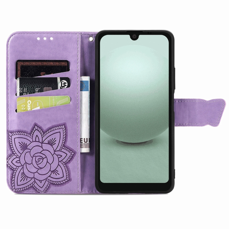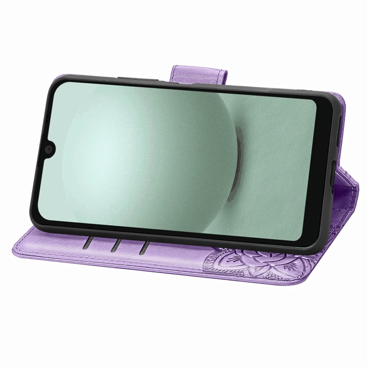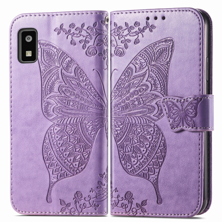 Estuche para Sharp Aquos Wish 3 Butterfly Love Flower en Cuero En Relieve (Lavanda)