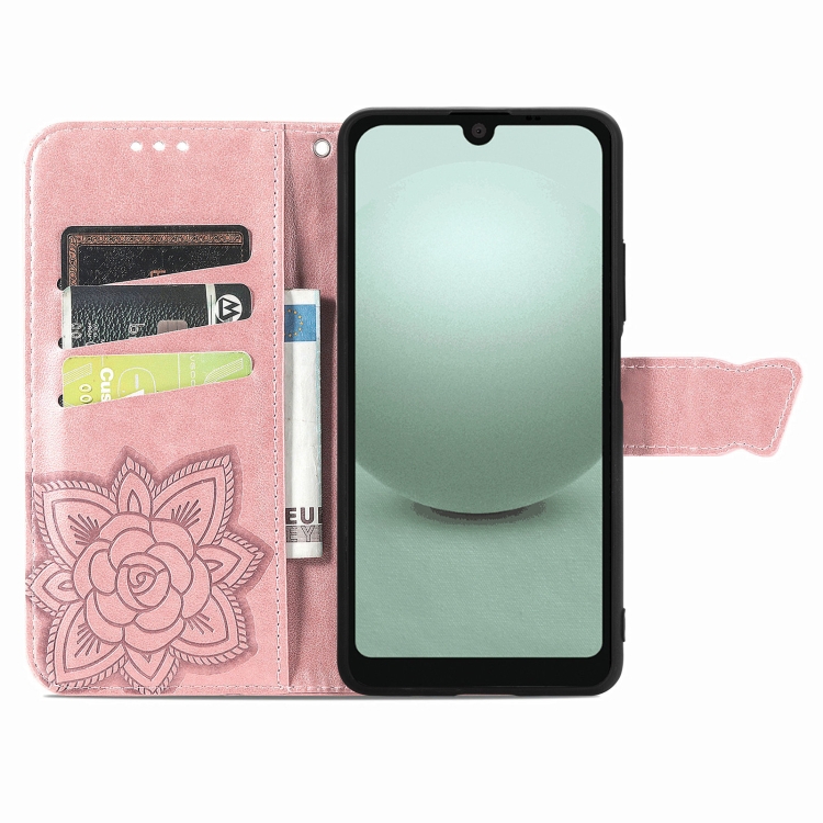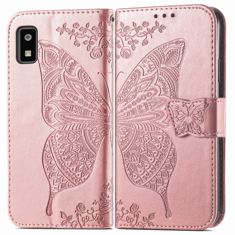 Estuche para Sharp Aquos Wish 3 Butterfly Love Flower de Cuero en Relieve (Oro Rosa)
