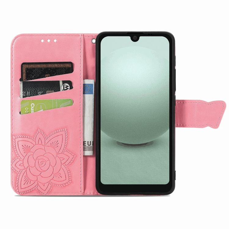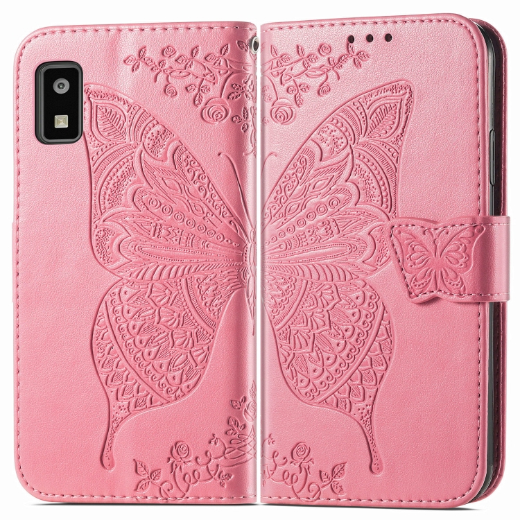 Estuche para Sharp Aquos Wish 3 Butterfly Love Flower de Cuero En Relieve (Rosa)