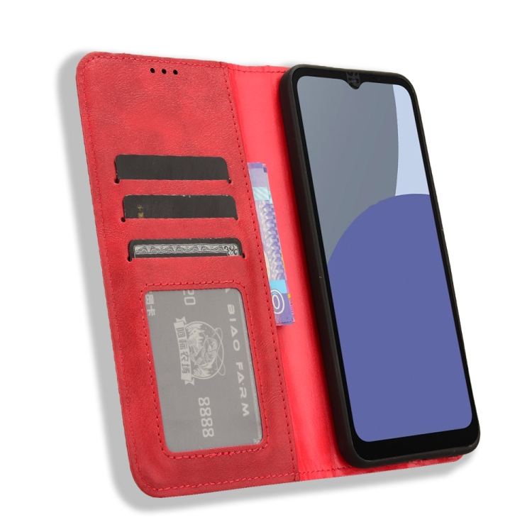 Funda para Sharp Aquos Wish4 de Cuero con Textura Retro y Hebilla Magnética (Rojo)