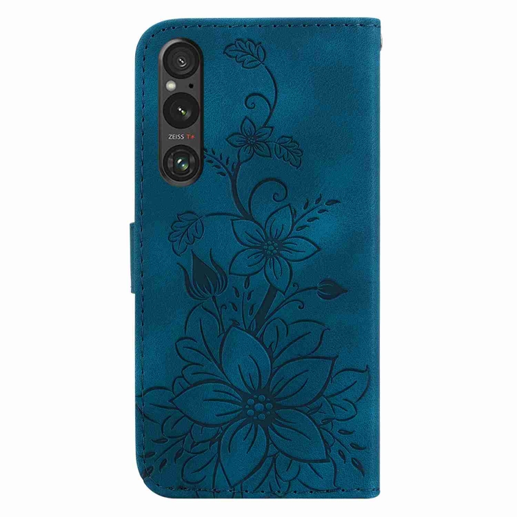 Estuche para Sony Xperia 1 V Lily de Cuero En Relieve (Azul Oscuro)